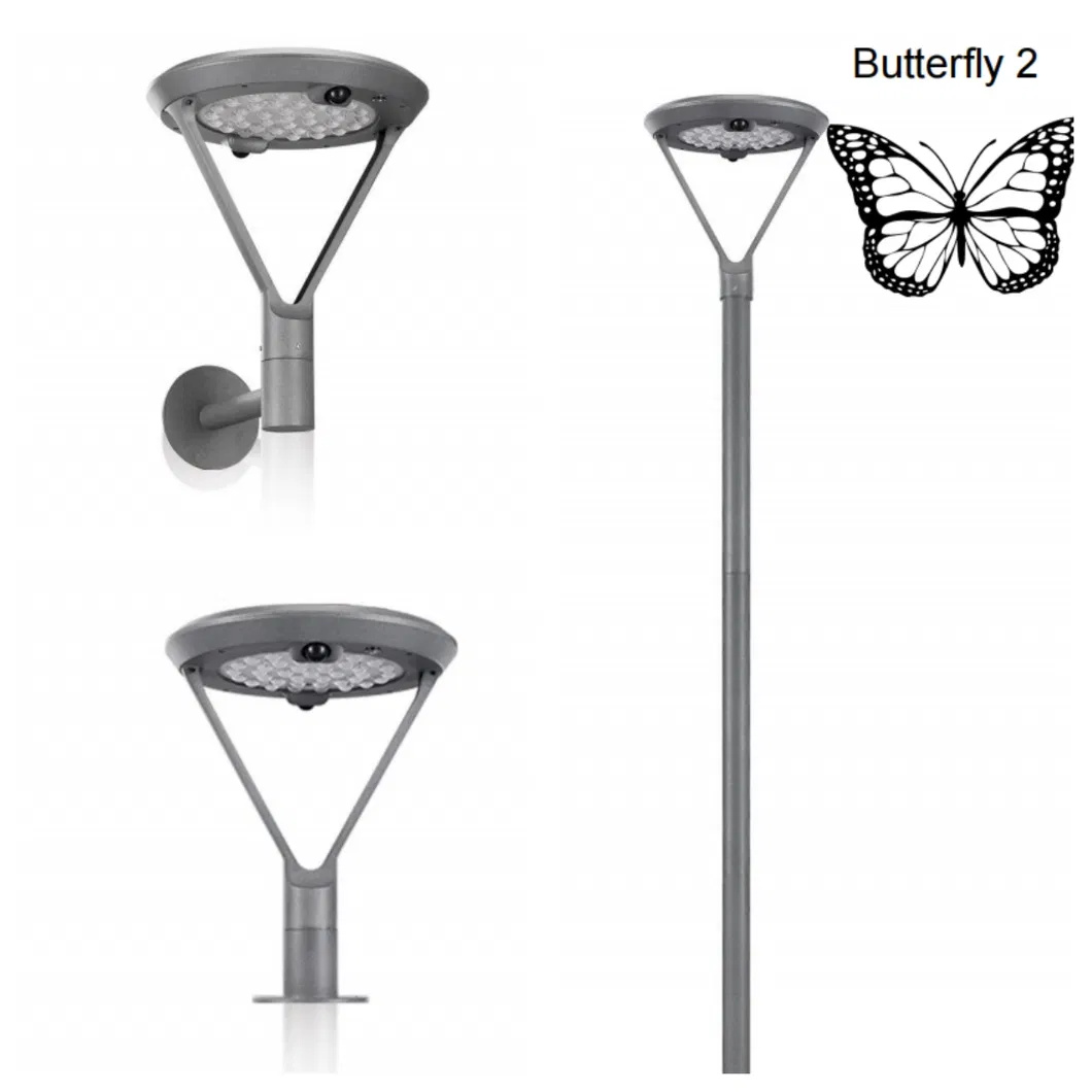 This product is a private model crafted from die-cast aluminum. The segmented rod design assists in reducing transportation costs. It features 360° dual PIR sensor control and a 3-step bright light sensor mode utilizing advanced infrared technology.